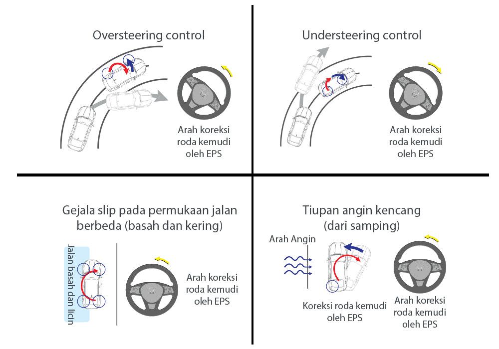 Anti-Lock Braking System (ABS) mencegah roda terkunci saat pengereman mendadak di permukaan licin, sedangkan Electronic Braking Distribution (EBD) membagi daya pengereman ke setiap roda sesuai beban kendaraan, dan Braking Assist (BA) yang akan menambah efektivitas pengereman.