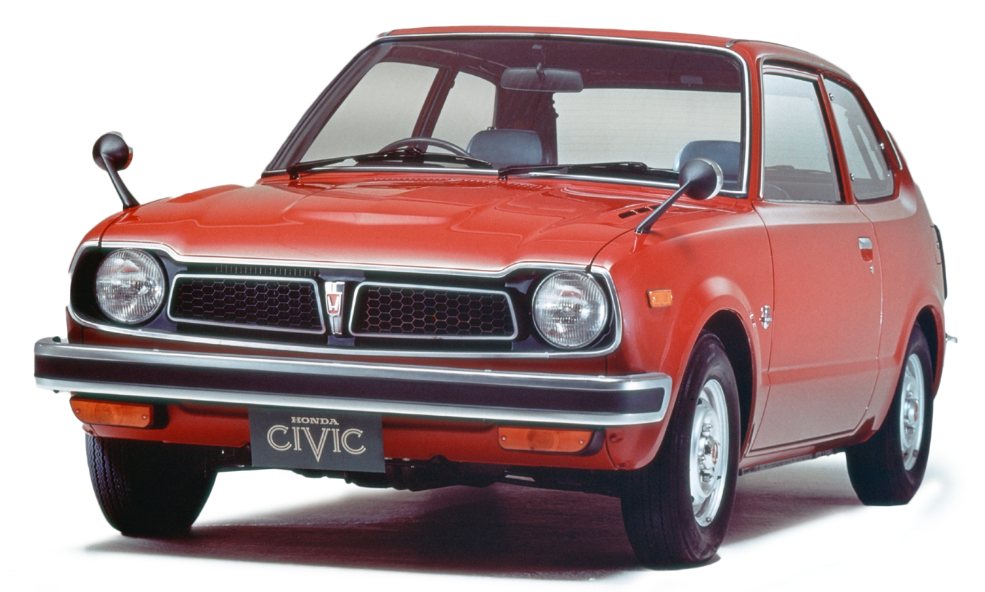 Honda Civic generasi pertama masuk ke Amerika Serikat pada tahun 1974 dengan menggunakan mesin baru yaitu CVCC (Compound Vortex Controlled Combustion) yang mampu menghasilkan tenaga lebih besar yaitu 52 hp serta menghasilkan emisi lebih baik serta konsumsi bahan bakar yang lebih baik.