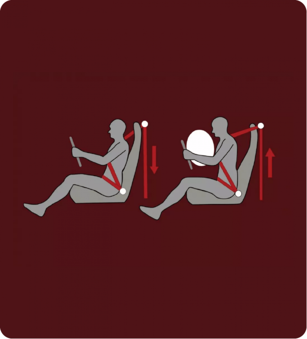 Ketika terjadi tabrakan, fitur Pretensioner Seatbelt akan mengencang sehingga tubuh tetap berada pada posisinya untuk mencegah gerakan dada ke depan.