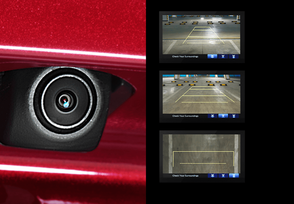 Memarkir mobil menjadi lebih mudah dengan fitur Multi-Angle Rear View Camera. Kamera mundur ini menyediakan tiga mode tampilan, yaitu: