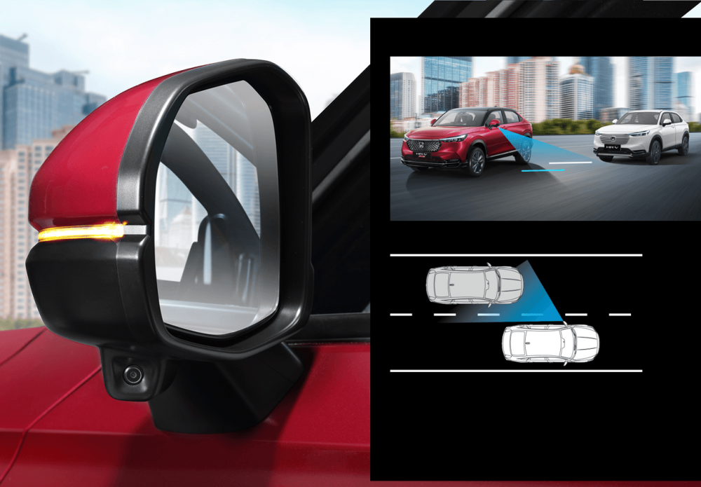 Di varian RS e:HEV, e:HEV Modulo, e:HEV, dan E+, fitur ini akan membantu mendeteksi bila ada kendaraan yang melaju dari sebelah kiri belakang.