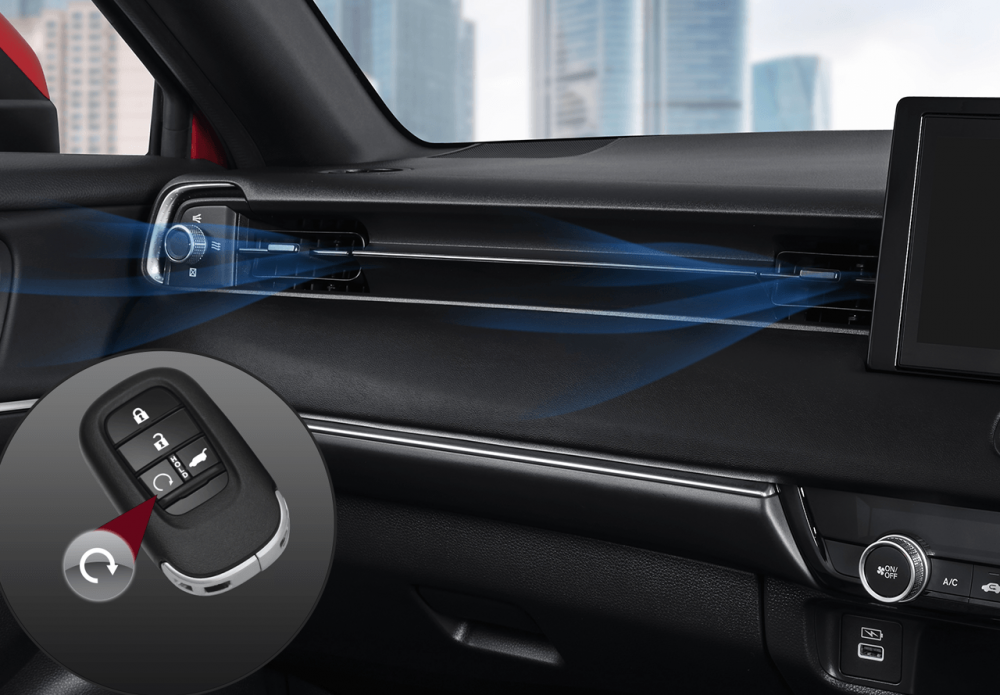 Kunci New Honda HR-V telah dilengkapi fitur Remote Engine Start, sehingga Anda dapat menyalakan mesin mobil dari kejauhan bahkan sebelum Anda memasuki mobil.