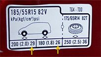 Pada petunjuk diatas, perhatikan angka yang ditunjuk anak panah. Petunjuk ini mengartikan bahwa ban depan harus diisi angin bertekanan 29 PSI, dan ban belakang 26 PSI. - Ukuran Ban Tidak Sesuai dengan Velg