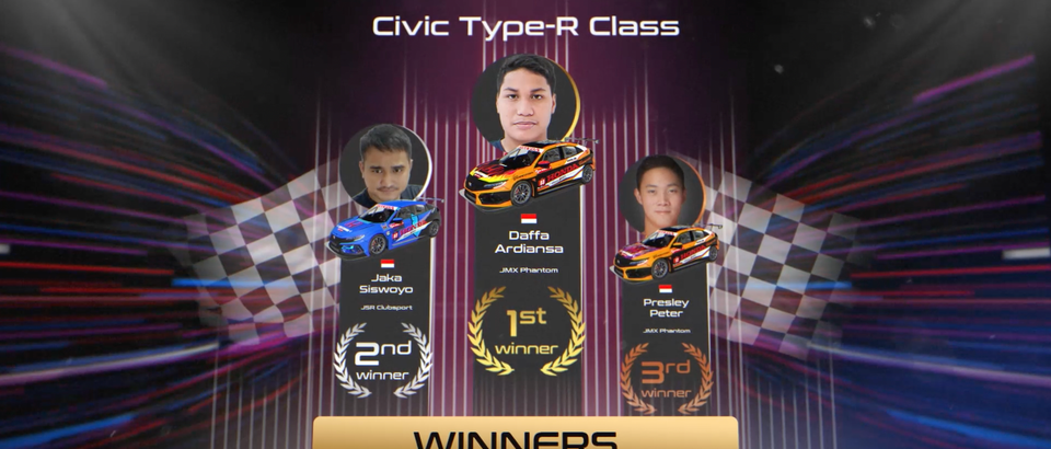 Di kelas Honda Civic Type R, Daffa Ardiansyah yang merupakan pembalap termuda yang menorehkan prestasi di ajang ini dengan usia 15 tahun keluar sebagai juara baru dengan total 101 poin. Di kelas yang paling kompetitif ini, Daffa berhasil mengungguli 34 peserta lainnya termasuk di antara 17 pembalap Internasional dari berbagai negara. Tak hanya Daffa, para simracer Indonesia lainnya juga menunjukkan prestasi di kelas dengan asal negara peserta paling beragam ini. Peringkat kedua ditempati oleh Jaka Siswoyo dengan total 84 poin, sementara peringkat ketiga kelas ini ditempati oleh Presley Peter dengan total 72 poin.
