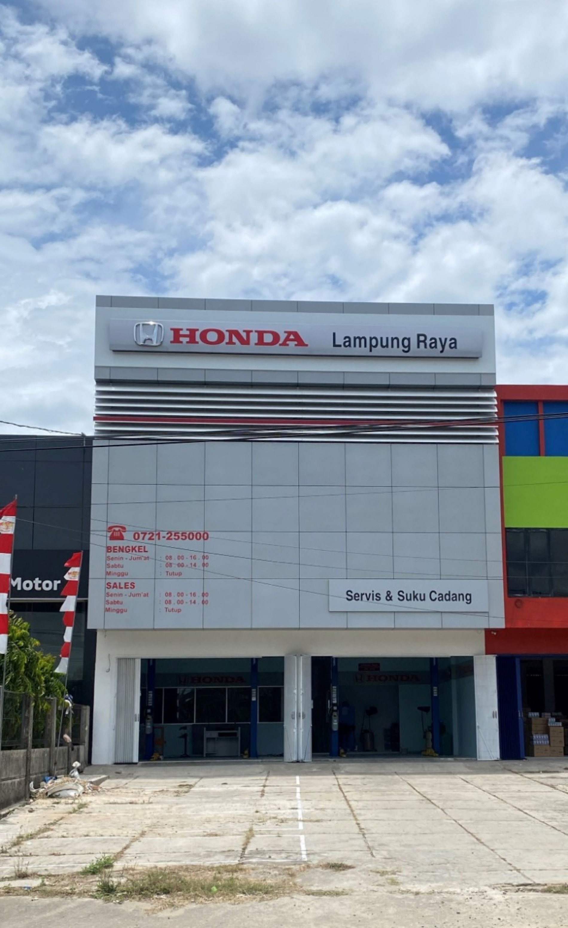 Honda Lampung Raya di kabupaten Pringsewu beralamat lengkap di Jl Raya Tambah Sari Ruko No 1 & 2 Seberang SPBU Tambah Rejo, Kelurahan Tambah Rejo Barat, Kecamatan Gading Rejo, Kabupaten Pringsewu. Dealer ini memiliki fasilitas layanan 2S (Service dan Spareparts) yang telah terpadu dan juga sesuai dengan standar Honda.