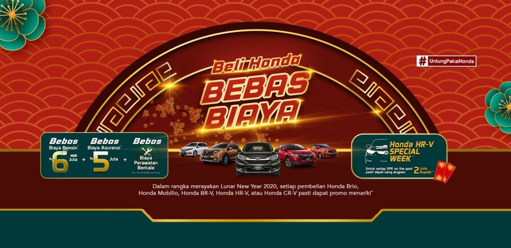 Hai @hondaisme ! Dalam rangka merayakan Lunar New Year 2020, dapatkan promo Beli Honda Bebas Biaya (bebas biaya bensin, bebas biaya asuransi dan bebas biaya perawatan berkala) setiap pembelian Honda Brio, Honda Mobilio, Honda BR-V, Honda HR-V atau Honda CR-V pada periode Januari - Maret 2020.