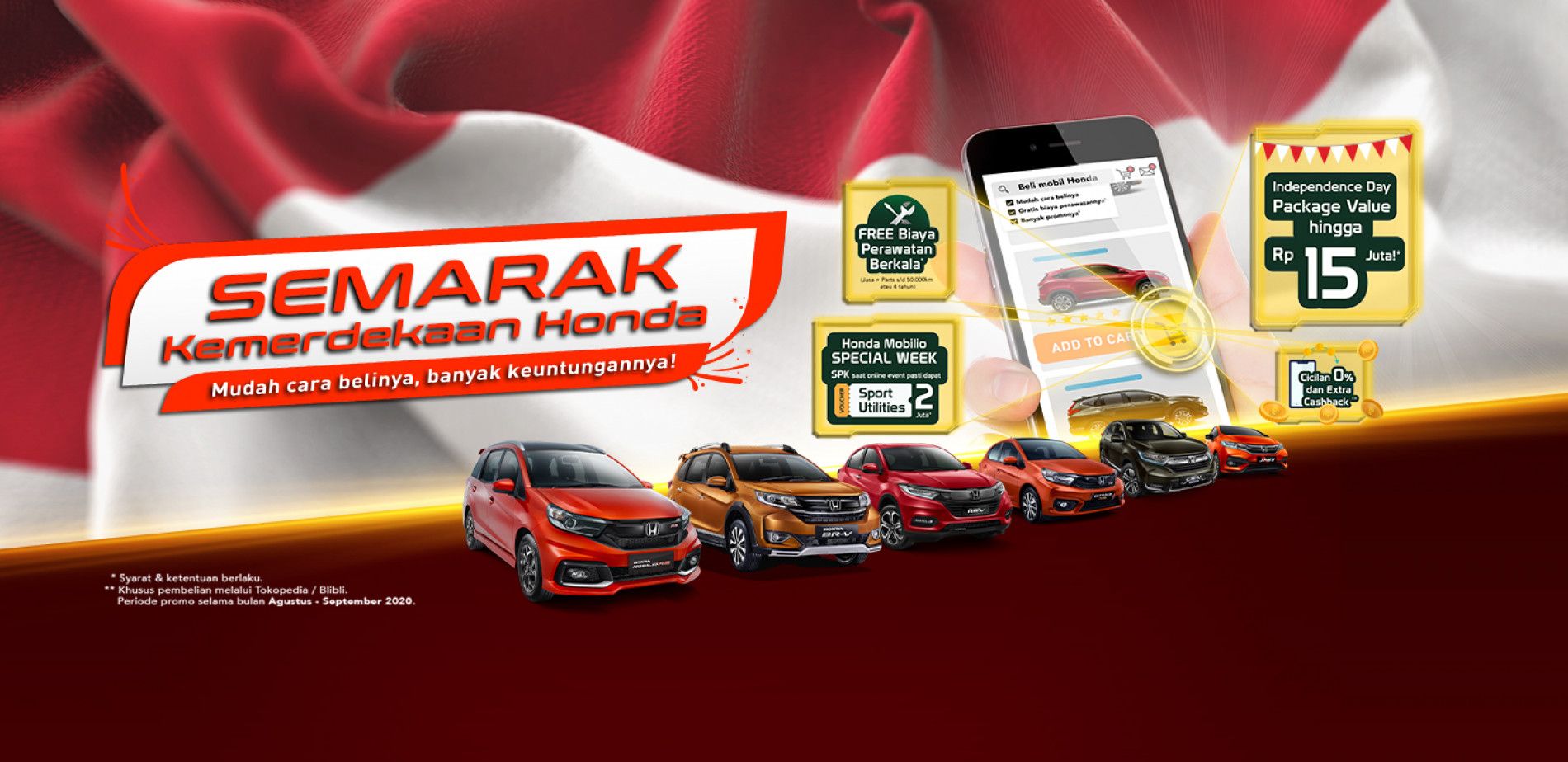 Pada bulan Agustus lalu, Honda menjalankan program penjualan “Semarak Kemerdekaan” yang menawarkan gratis biaya perawatan berkala sampai dengan 4 tahun / 50.000 km untuk pembelian model-model Honda tertentu. Pada program ini, Honda juga menawarkan program cicilan spesial sebesar 0% selama 3 tahun untuk pembelian Honda Mobilio dan Honda BR-V. Honda juga berpartisipasi dalam ajang Indonesia Otomotif Online Festival (IOOF) 2020 dengan menawarkan program penjualan “Independence Package Value” hingga Rp 15 juta untuk setiap pembelian mobil Honda Brio, Honda Mobilio, Honda BR-V, dan Honda HR-V.