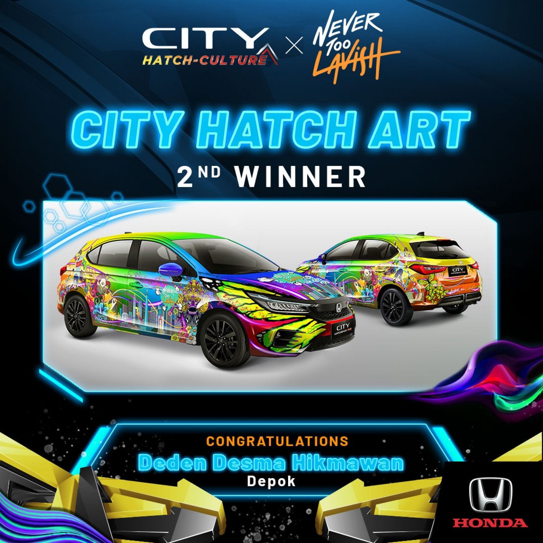 Jakarta, 18 Agustus 2021 – PT Honda Prospect Motor mengumumkan desain dari Ferdiansyah Ramadhan sebagai pemenang dari kompetisi City Hatch Art pada 18 Agustus 2021. Karya desain virtual kontestan yang berasal dari Depok ini terpilih sebagai desain terbaik setelah mengalahkan 428 karya lainnya yang telah terkumpul selama kontes berlangsung sejak 25 Juni hingga 30 Juli 2021.